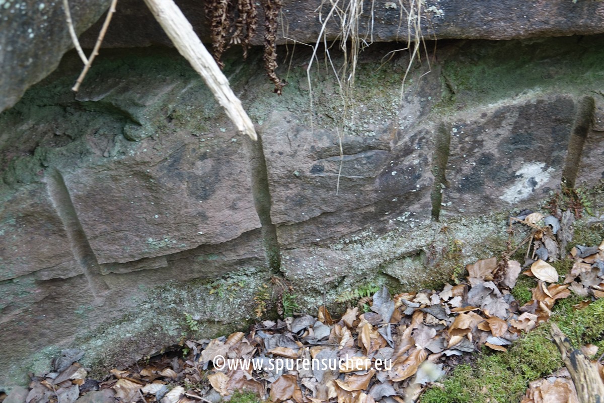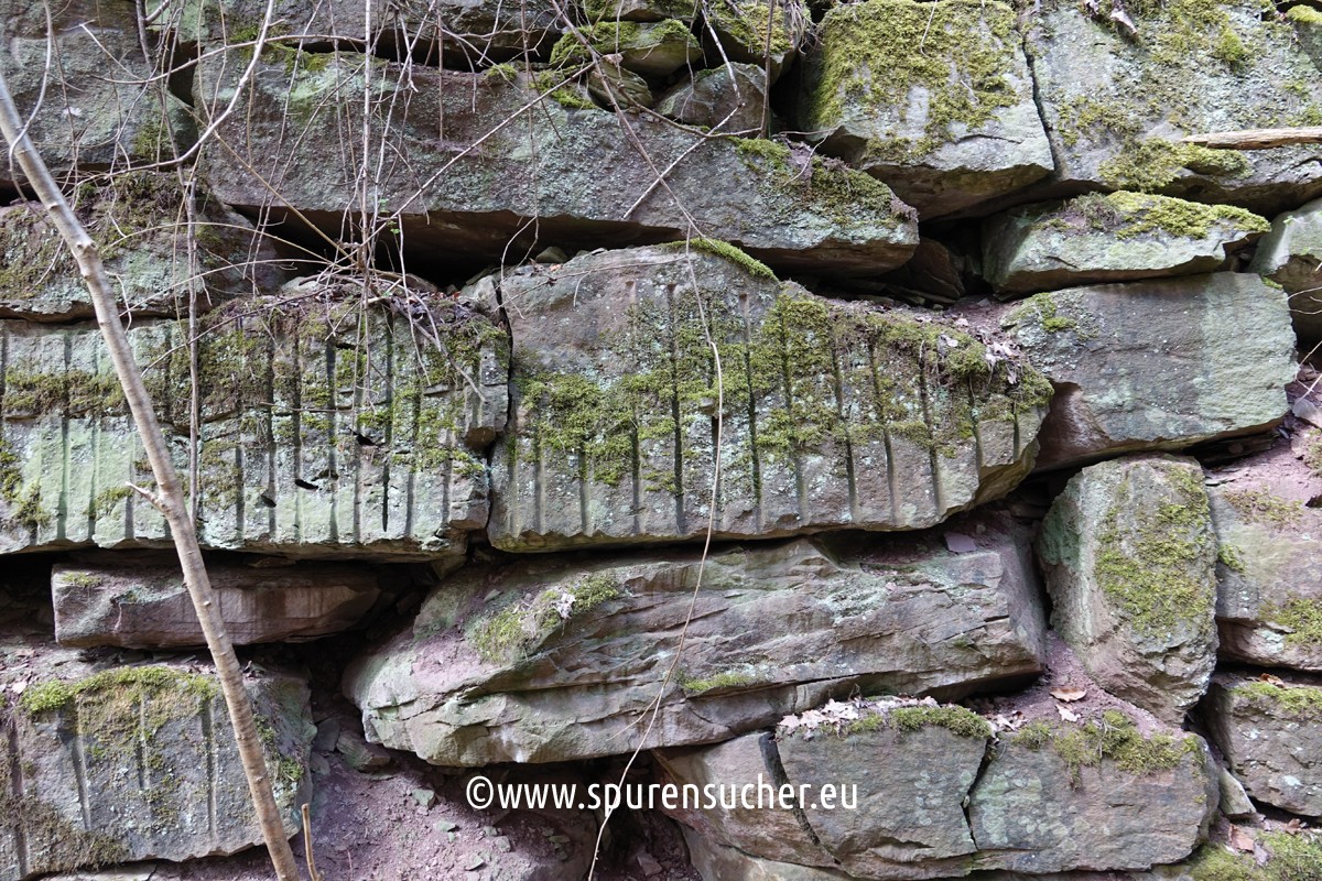 Der Pyramidale Cairn Komplex in Merklingen mit riesigen Sandsteinblöcken wirkt auf mich künstlich nicht natürlichen Ursprungs. Die 7 Meter hohe Megalithwand hat ähnliche Bearbeitungsspuren die wir auch im Schwarzwald wieder finden. Die Sandsteinblöcke die aufeinander gestapelt wurden haben tiefe Rillen (Bohrungen).