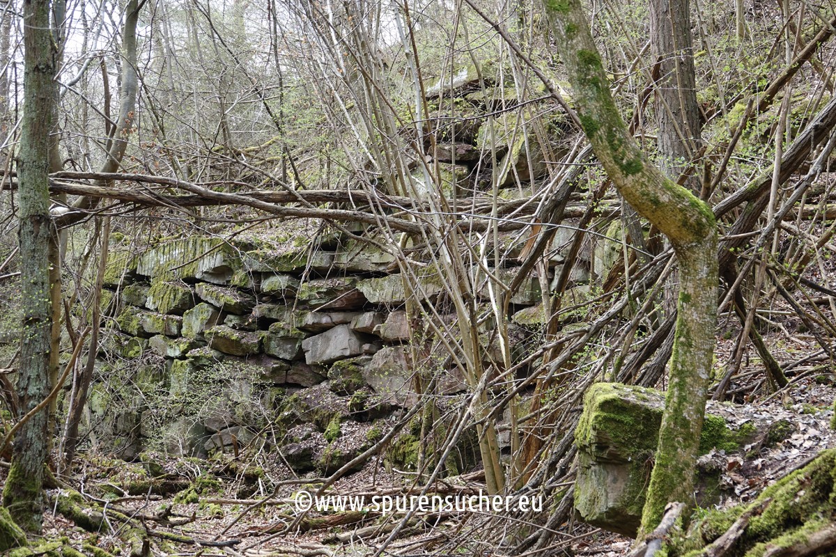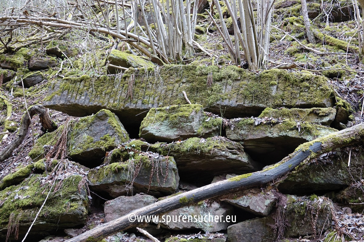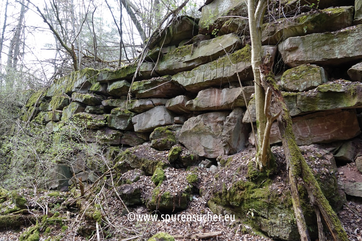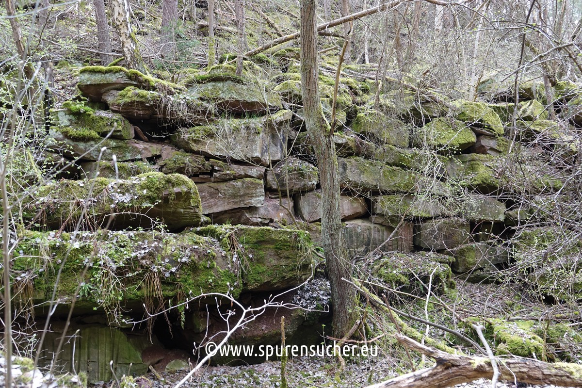 Die Felsen sind jeweils etwa bis zu 7 Metern hoch aufgetürmt und dienten sicherlich der Befestigung oder (vielleicht sogar nachträglichen) Tarnung einer Struktur, die man heute mit bloßem Auge nicht mehr kann. Die Reliefkarte des Geoportals Baden-Württemberg bestätigt den exponierten Bergrücken, lässt aber zunächst auch keine künstlichen Strukturen erkennen. Man muss schon vor Ort sein, um sich davon ein Bild davon zu machen.