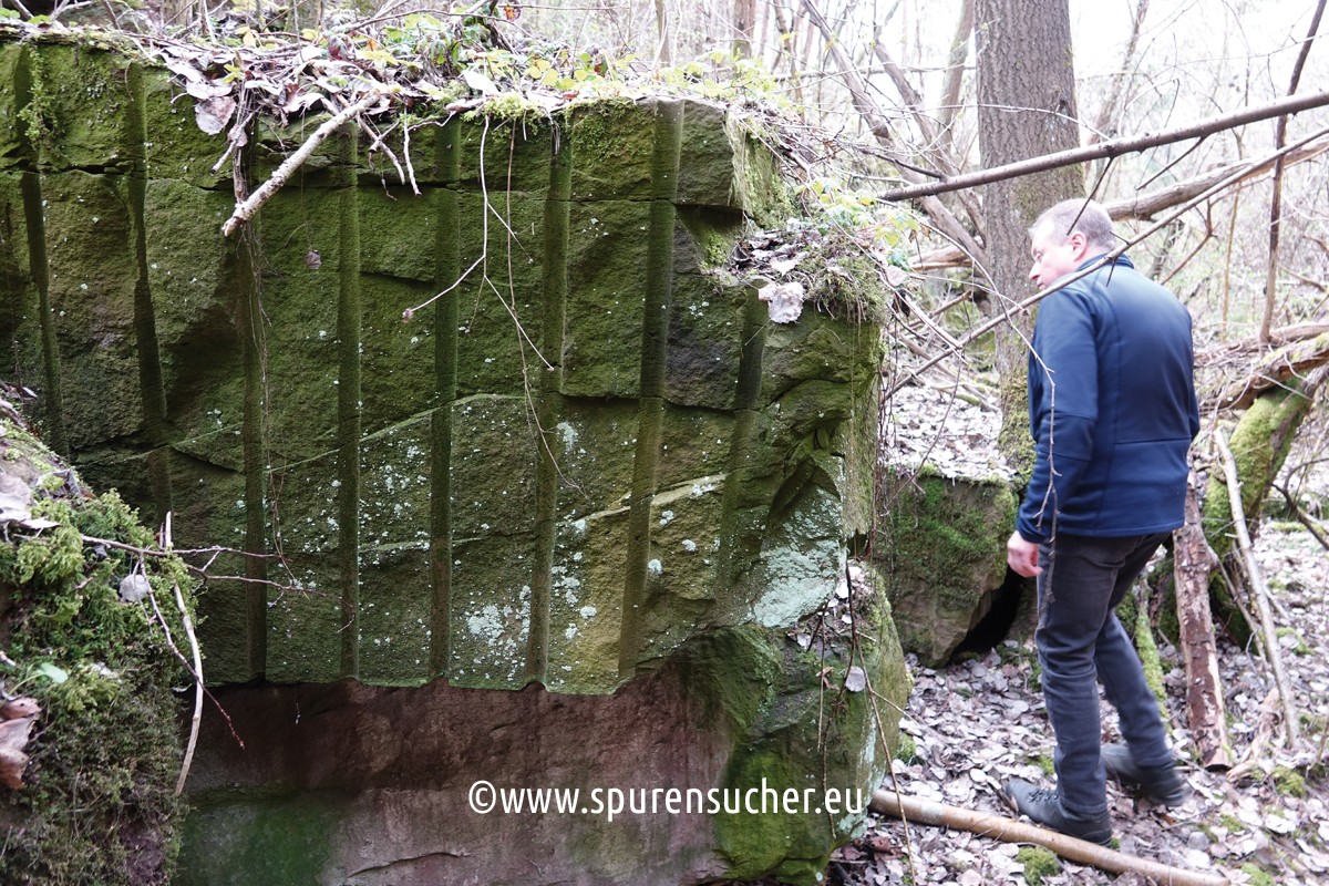 Selbst die Vorderseite des Natursteins in der Grube ist so glatt und eben wie die Vorderfront eines unterirdischen Bunkers. Absolut bemerkenswert.